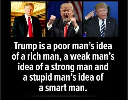 President Trump is not even a businessman. At best, he’s a salesman in the tradition of a sideshow barker or the stereotypical “used car salesman”. His only product is Donald Trump. He will latch on to any hair-brained scheme or wild conspiracy theory that he believes will make him the center of attention. There’s an Internet meme that explains Trump well.[9]